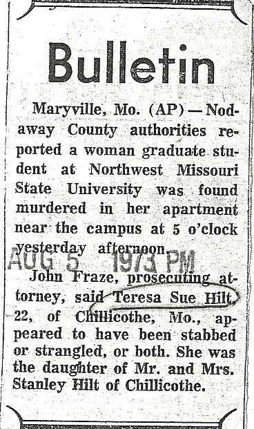 In just a few weeks it will be 40 years since Tess Hilt was brutally murdered in the early morning hours of August 4, 1973. More on that soon… please stay tuned. Do you know anything that can help us find those who killed her? Tips4Tess@aol.com
